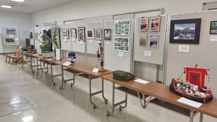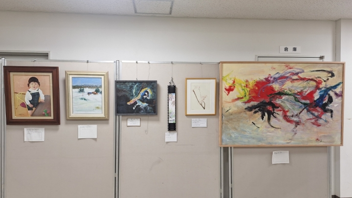会員及び家族43名と1サークルから出品された絵画、写真、手芸品等126点を展示しました。