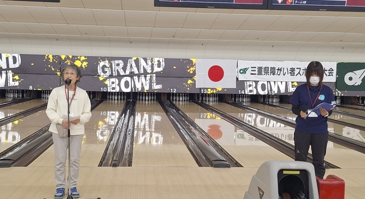 大会で挨拶される鈴木知事第22回三重県障がい者スポーツ大会ボウリングに協力しました。
