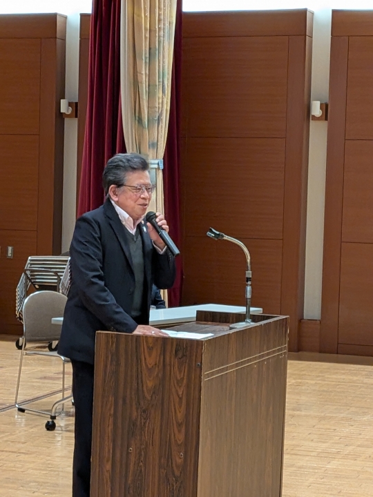 瀧薫代表からは、「令和7年度は本団体が発足して30年目、ふれあいカレッジも15年を迎える年でした。この間、会員の皆さまには充実しかつ継続した活動をしていただきました。例えば、小学生・幼稚園児とともに行うむかしあそび体験交流は、本日のご来賓の石川会長が教育長のときに、学校の教育の一環として始まり、既に10年が経ちました。30年と言っても平坦な道ではなく、団体として自立しなければならず、そのためには新たな仲間づくりが必要でした。そして始めたのが仲間づくり事業としての、ふれあいカレッジです。今後も、いろんなことが待ち受けていると思われますが、楽しく、楽しく、楽しく進めていきましょう。」と力を込めた挨拶がありました。